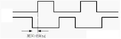 對(duì)于半橋、全橋和LLC諧振等一些H橋或半H橋的拓?fù)潆娫矗琍WM的死區(qū)時(shí)間設(shè)定對(duì)電源可靠性至關(guān)重要。實(shí)際上設(shè)定死區(qū)時(shí)間實(shí)則為了避免上、下管直通從而導(dǎo)致電源炸機(jī),也就是說(shuō)設(shè)定一段上、下管同時(shí)關(guān)斷的時(shí)間,在上管關(guān)斷后延遲一段時(shí)間再導(dǎo)通下管或在下管關(guān)斷后延遲一段時(shí)間再導(dǎo)通上管,如圖 2所示td即為死區(qū)時(shí)間。