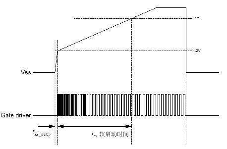 電源的軟啟動(dòng)對(duì)降低場(chǎng)效應(yīng)管和輸出二極管的尖峰電壓和尖峰電流有很大幫助,從而降低了其電壓應(yīng)力和電流應(yīng)力。但是對(duì)于LLC諧振電源來(lái)說(shuō),軟啟動(dòng)對(duì)電源起機(jī)的可靠性非常關(guān)鍵;因?yàn)長(zhǎng)LC電源的IC是通過(guò)高頻掃描的方式啟動(dòng)的。如圖 3所示在IC啟動(dòng)時(shí)驅(qū)動(dòng)PWM頻率會(huì)從設(shè)定的最高頻率開(kāi)始慢慢恢復(fù)正常頻率,恢復(fù)時(shí)間也就是軟啟動(dòng)時(shí)間。在此期間電源工作在不穩(wěn)定狀態(tài),軟啟動(dòng)時(shí)間越長(zhǎng),啟動(dòng)越安全;但軟啟動(dòng)時(shí)間過(guò)長(zhǎng)也會(huì)對(duì)電源帶容性負(fù)載能力和起機(jī)時(shí)間造成影響。